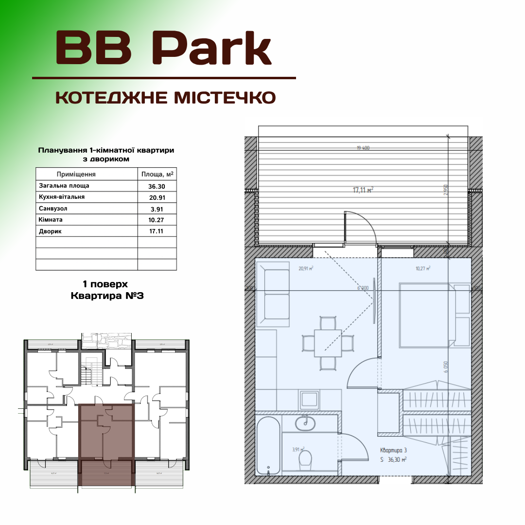 Пропозиція: 1-кімнатна квартира з двориком