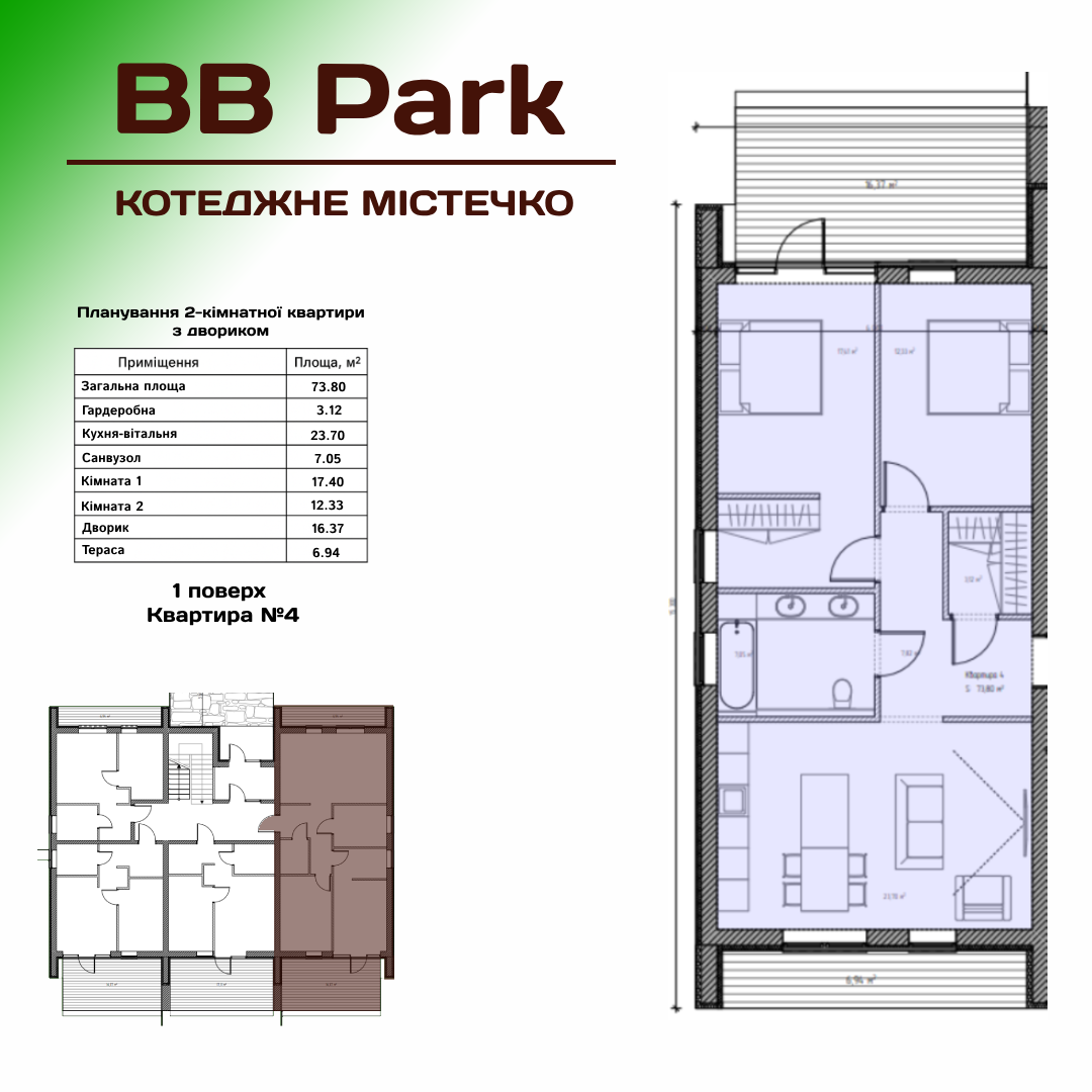 Продаж 2к квартира 73.8 м2 з двориком, Боярка – Білогородка АКЦІЯ до 06.08.2025